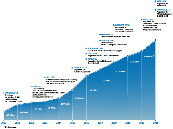 | 05/2021 | Akquisition der WKM Werkstatt für Körperbehinderten- Hilfsmittel, Orthopädie, Reha- und Medizintechnik GmbH |